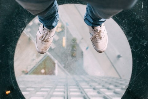 I hate this picture. I feel as though I am right there. My anxiety spikes because part of my mind tells me that I am the one standing 200 free-falling-feet in the air. My mind tells me that the glass will break and I will fall.